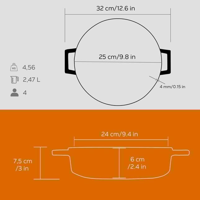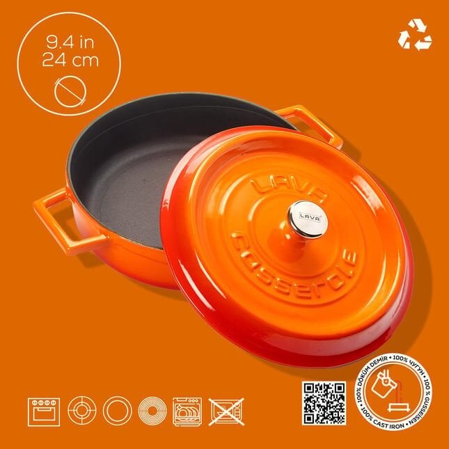 Lava Döküm Çok Amaçlı Yayvan Tencere. Trendy Serisi Çap(Ø)24cm