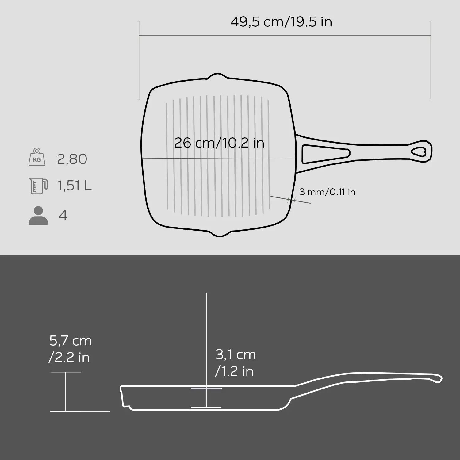 Lava Döküm Kare Izgara Tava Döküm Demir Yekpare Saplı. Ölçü 26x26cm.