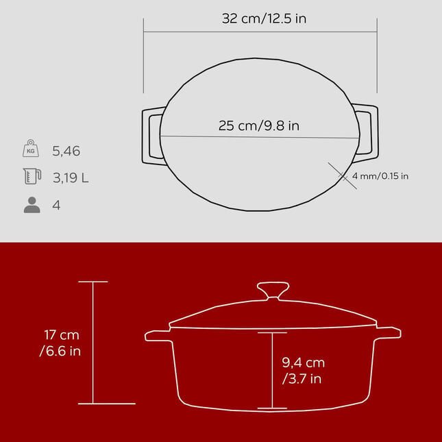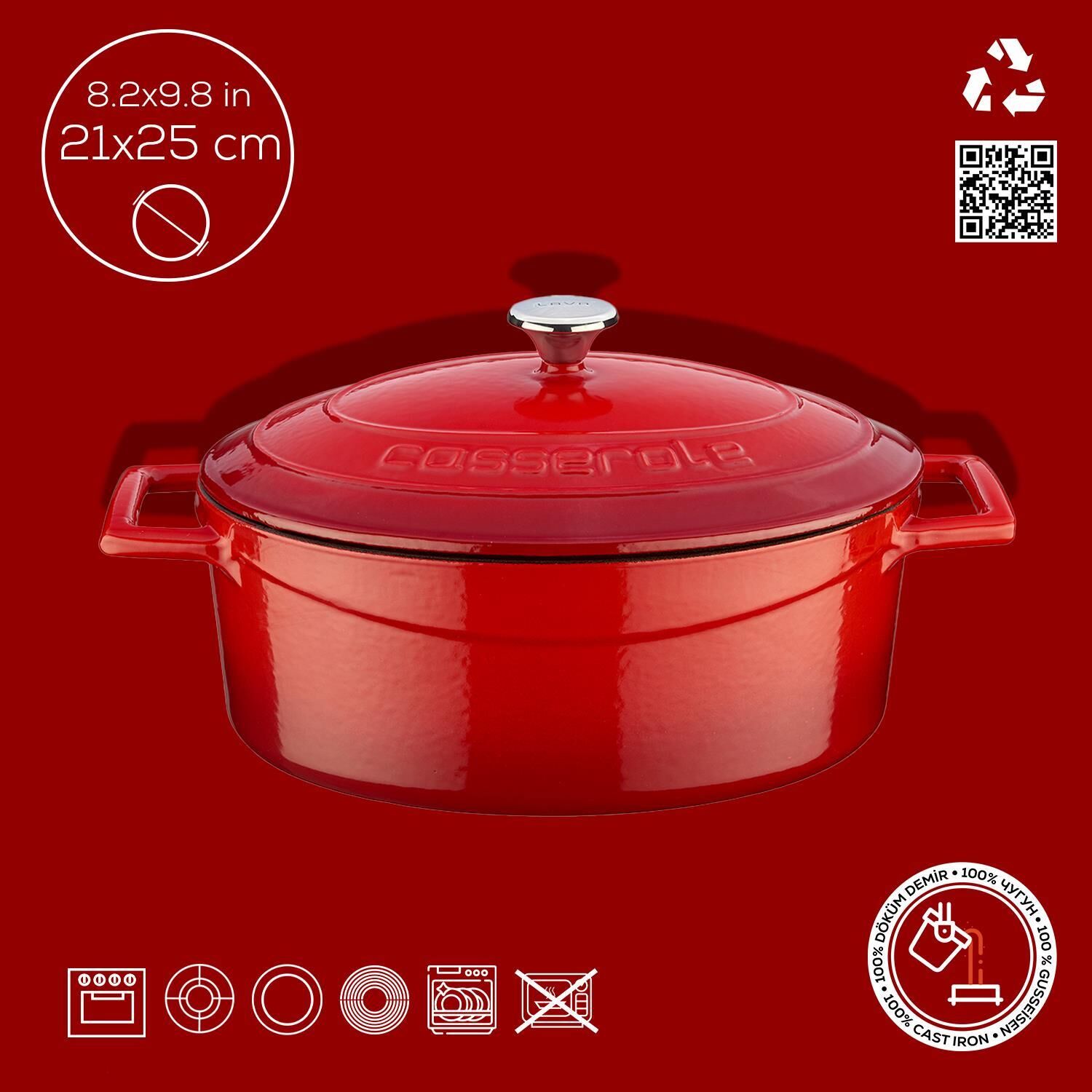 Lava Döküm Oval Tencere. Folk Serisi Ölçü 21x25cm