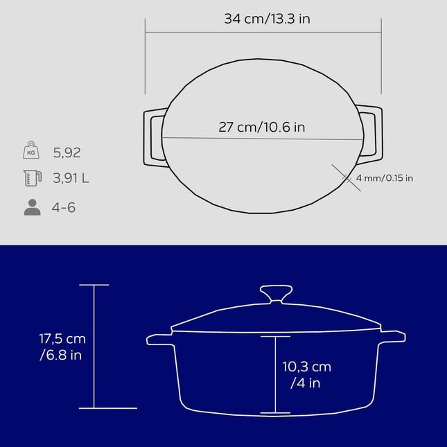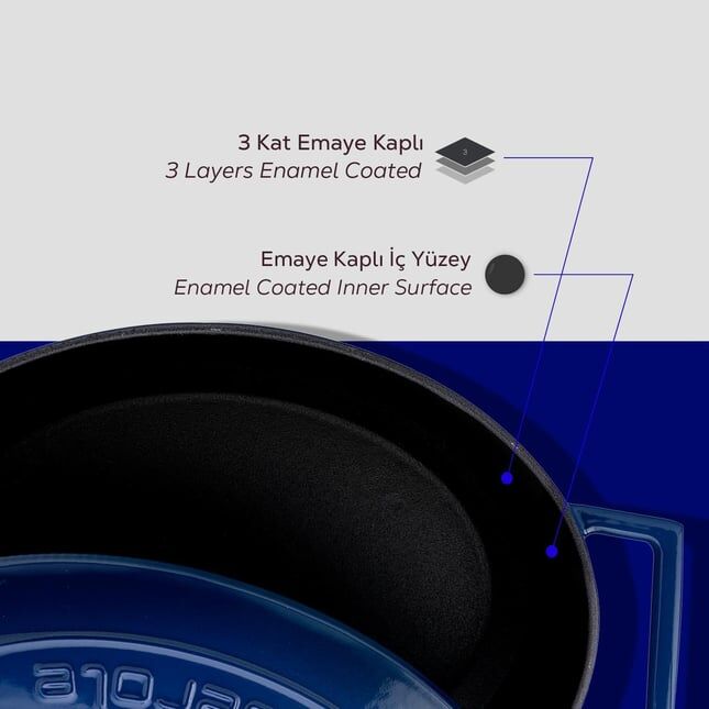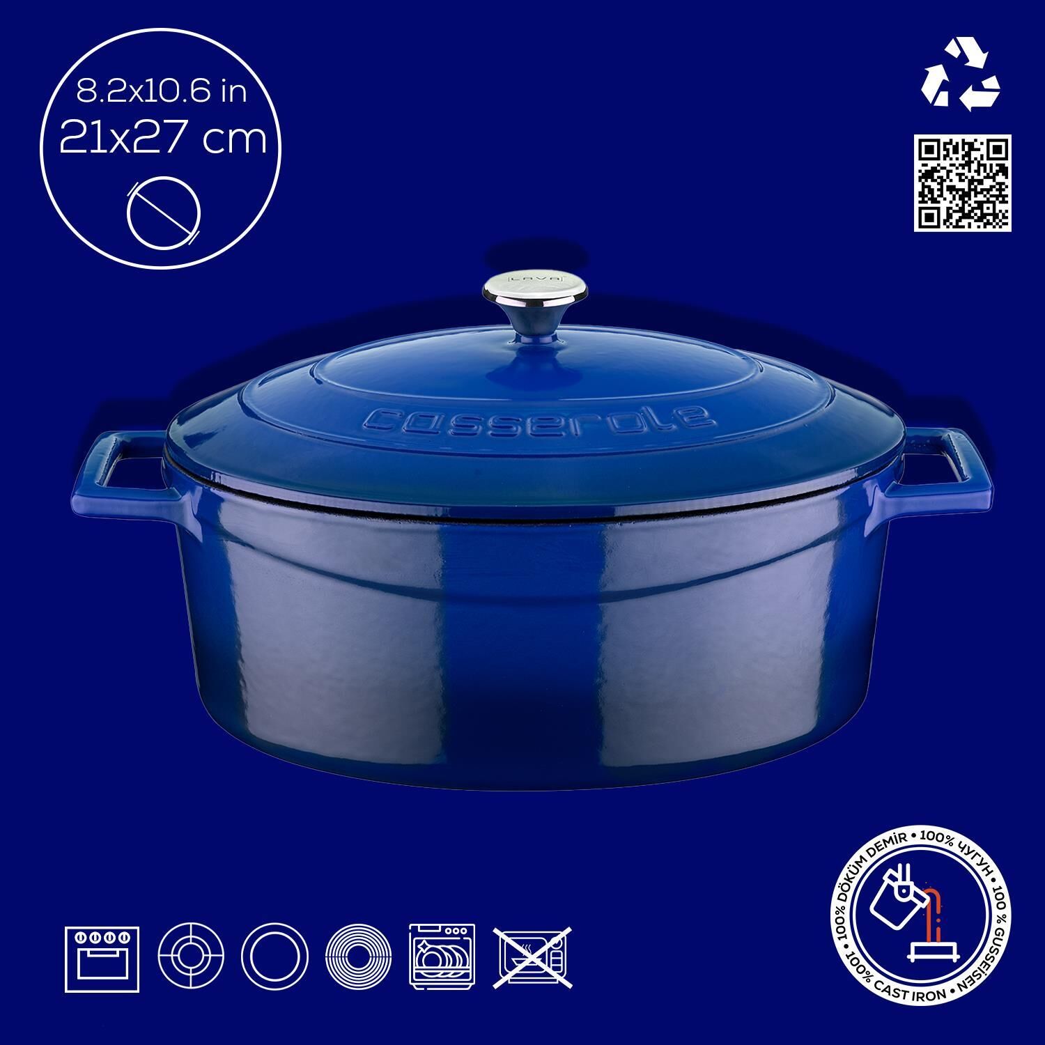 Lava Döküm Oval Tencere. Folk Serisi Ölçü 21x27cm