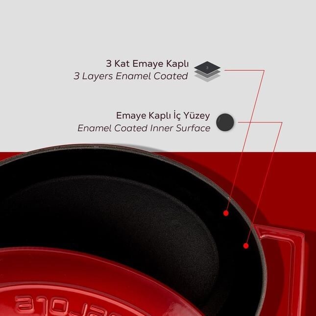 Lava Döküm Oval Tencere. Folk Serisi Ölçü 21x27cm