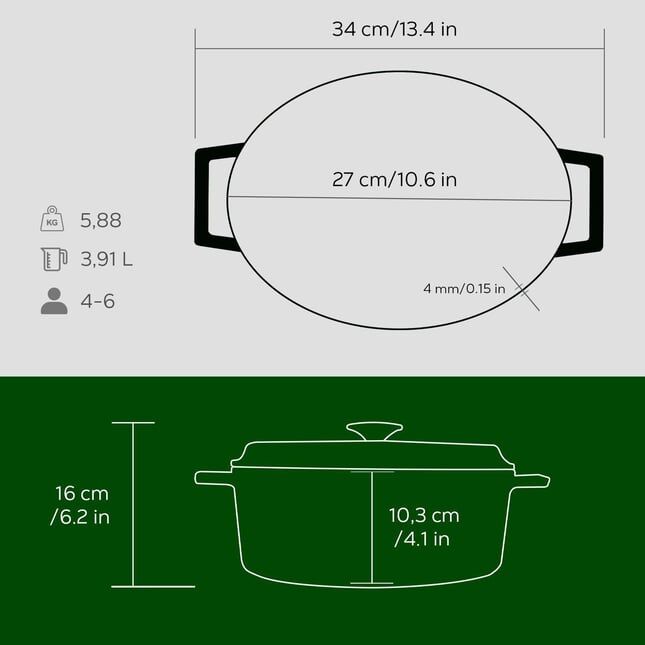 Lava Döküm Oval Tencere. Trendy Serisi Ölçü 21x27cm