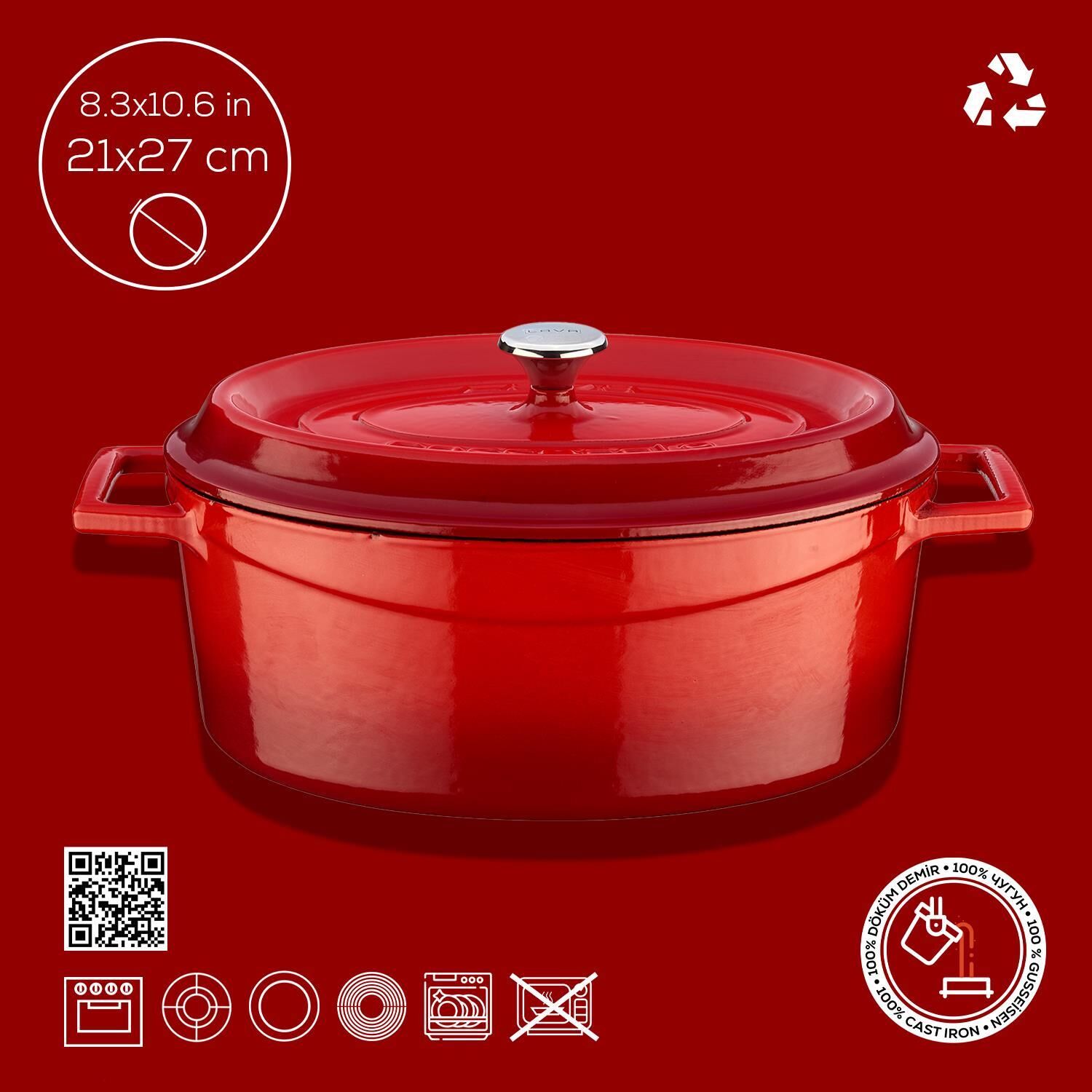 Lava Döküm Oval Tencere. Trendy Serisi Ölçü 21x27cm Lava Döküm Oval Tencere. Trendy Serisi Ölçü 21x27cm LV O TC 27 K2 R