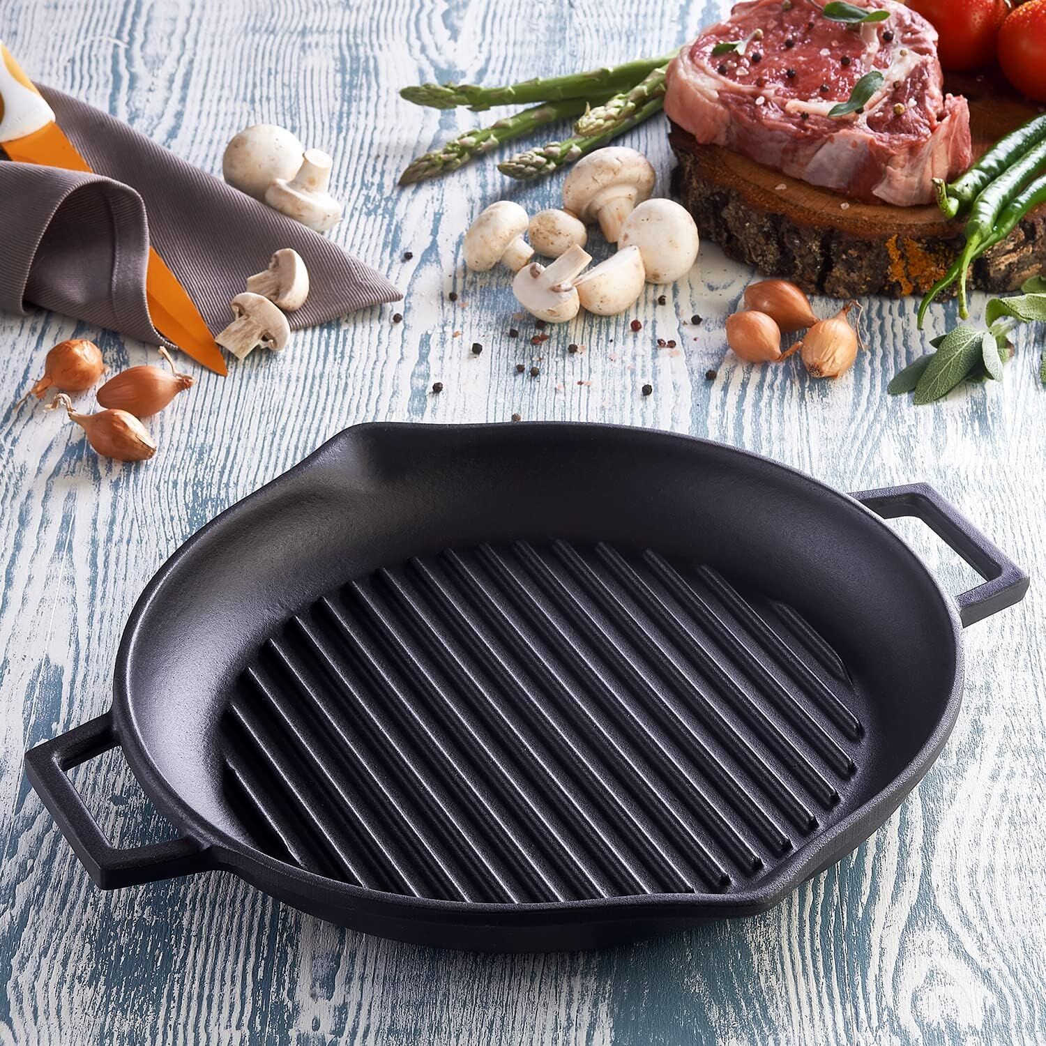 Lava Döküm Yuvarlak Izgara Tava Metal Kulplu Çap 26 CM