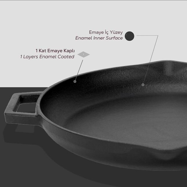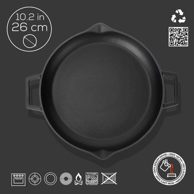 Lava Döküm Yuvarlak Kızartma Tavası Döküm Demir Yekpare Çift Kulplu Çap(Ø)26cm