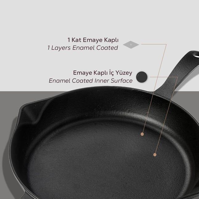 LAVA Döküm Kızartma Tava’nız, mühürleme yöntemi ile sizi ağız sulandıran yemeklerle buluştururken, istenmeyen su salınımını önleyerek besin değerlerinin kaybolmasını engeller. %100 geri dönüştürülebilir ve kanserojen içermeyen LAVA’nız, sağlıklı yaşam ve sürdürülebilir bir çevre için mutfağınızda atabileceğiniz bir adımdır.